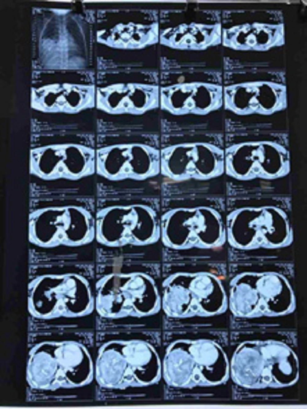 Qua thăm khám lâm sàng và phim chụp cắt lớp điện toán lồng ngực, các bác sĩ (BS) phát hiện một khối u rất lớn nằm ở thùy dưới phổi phải chiếm hơn ½ khoang lồng ngực, chèn ép vào tim và choán gần hết lồng ngực bệnh nhi. Ngoài ra, khối u có biểu hiện đang phát triển nhanh, tăng tưới máu dữ dội khiến bệnh nhi luôn trong tình trạng thiếu máu, hay bị ngất và không thể lên cân được.