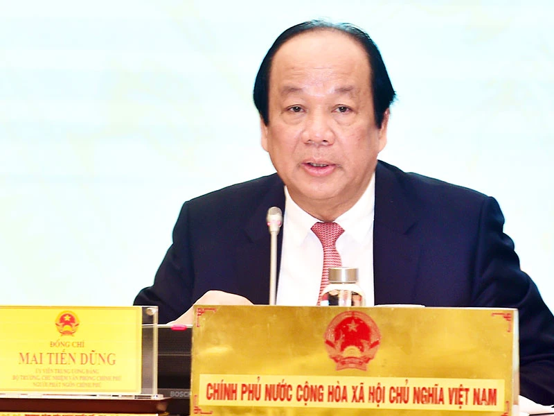 Bộ trưởng - Chủ nhiệm Văn phòng Chính phủ Mai Tiến Dũng tại buổi họp báo. Ảnh: TN