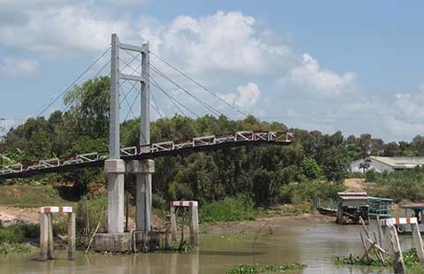 Được biết cây cầu này vừa hoàn thành và đưa vào sử dụng khoảng nửa tháng nay với kinh phí gần 2,5 tỉ đồng, trong đó người dân đóng góp 500 triệu đồng. Sau khi cầu sập, người dân đành phải qua lại bằng phà như trước đây.