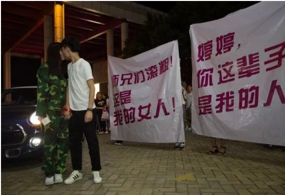 Mối tình này bắt đầu từ khi họ học trung học. Chàng trai đã bỏ học để lập công ty riêng, trong khi cô gái mới bắt đầu học ĐH. Để đảm bảo không kẻ nào chen ngang mối quan hệ này, chàng trai quyết định bố trí màn cầu hôn khoa trương này ở ký túc xá của bạn gái.