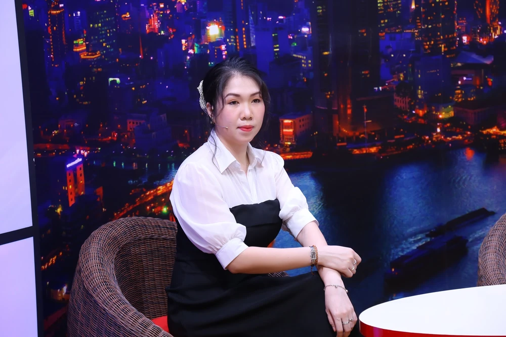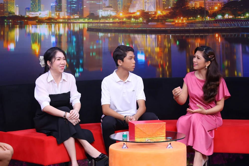 Thạc sĩ tâm lý Vũ Kim Ngọc chia sẻ cùng hai mẹ con chị Thùy Dương tại chương trình. Ảnh: JET