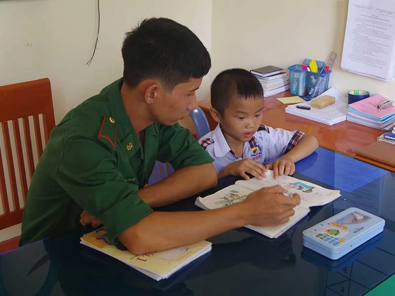 “Ngày trước bé Chương chưa quen, mỗi buổi sáng lại có một chú biên phòng gần nhà rước con qua đơn vị, chiều thì đón về với bà. Sau này con quen nên ở luôn trong đồn với các chú” - Trung úy Quân kể.