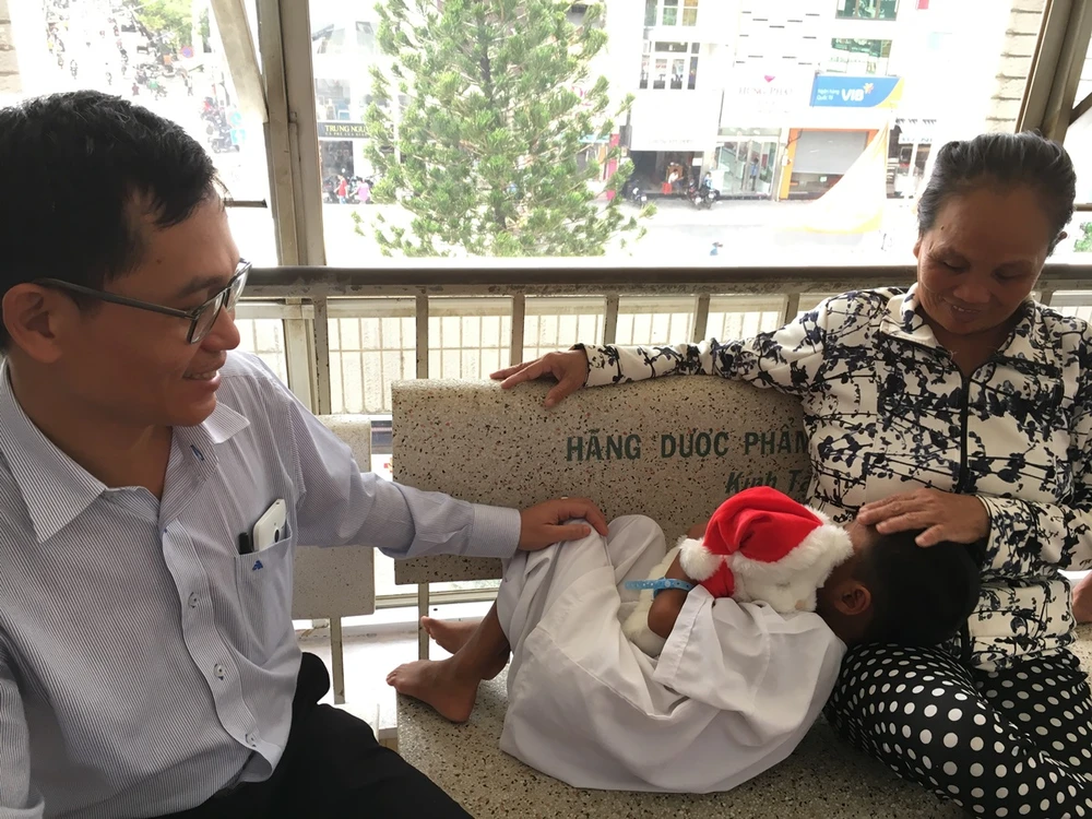 Dù còn đau nhưng Lâm không rời "em" là chú gấu bông Noel. Đây là món quà Noel sớm đầu tiên trong đời em do BS Nguyễn Xuân Anh, Trưởng khoa Vi phẫu tạo hình BV Sai Gon-ITO (TP.HCM), tặng động viên Lâm trước ca phẫu thuật. BS Xuân Anh cũng là người trực tiếp phẫu thuật và lo lắng cho hai bà cháu Lâm tại Sài Gòn những ngày qua.