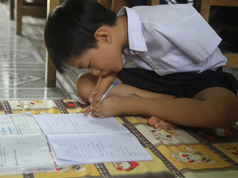 Thấy con thua thiệt so với những đứa trẻ khác về mặt thể chất nên vợ chồng chị Vy quyết tâm nuôi con nên người, học hành đến nơi đến chốn. “Mình không thể cho con một cơ thể lành lặn như bạn bè thì phải cố gắng bù đắp lại cho con cái khác. Chỉ có đi học mới có thể giúp con thay đổi số phận, có được nghề nghiệp để nuôi sống bản thân mình nên dù có khó khăn đến cỡ nào vợ chồng tôi cũng cố gắng lo cho con ăn học”.