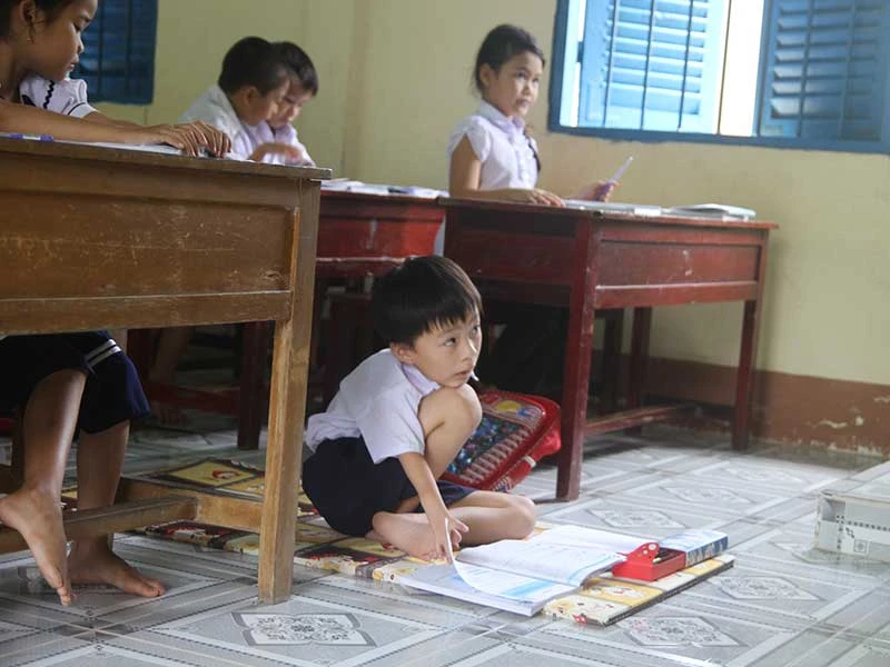 Chỗ ngồi đặc biệt của Tài trong lớp học. Ảnh: H.DƯƠNG