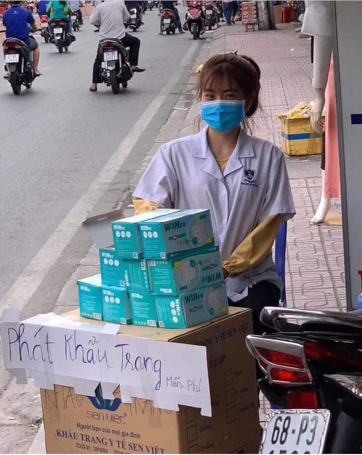 Một điểm phát khẩu trang miễn phí. Ảnh: MXH