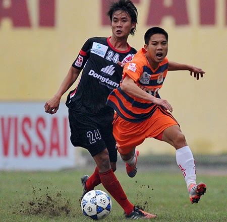 Lê Văn Duyệt (phải) tự đào hố chôn mình trong nhóm phản bội làm độ tại AFC Cup 2014. Ảnh: XUÂN HUY