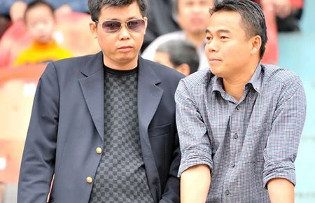 Bầu Trường (trái) hồi mon men học làm bóng đá và bắt tay với “siêu cò” Trần Tiến Đại. Ảnh: QUANG THẮNG