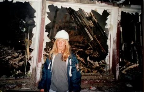 Nữ thám tử Carol Onazem khi đang tham gia cứu hộ, người quyên góp chiếc đế giày bị nóng chảy. (Ảnh: AP)