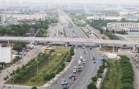 Cầu vượt nút giao quốc lộ 1 - tỉnh lộ 10, một công trình đầu tư theo hình thức BOT hoàn thành trong năm 2013. Ảnh: MP