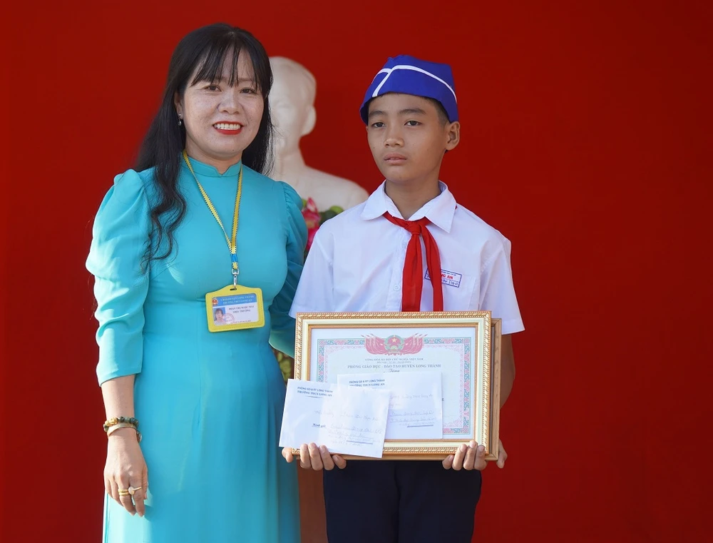 Tại buổi lễ, lãnh đạo Phòng Giáo dục huyện Long Thành cùng một số đơn vị đã đến Trường THCS Long An biểu dương, khen thưởng hành động đẹp của em Đạt.