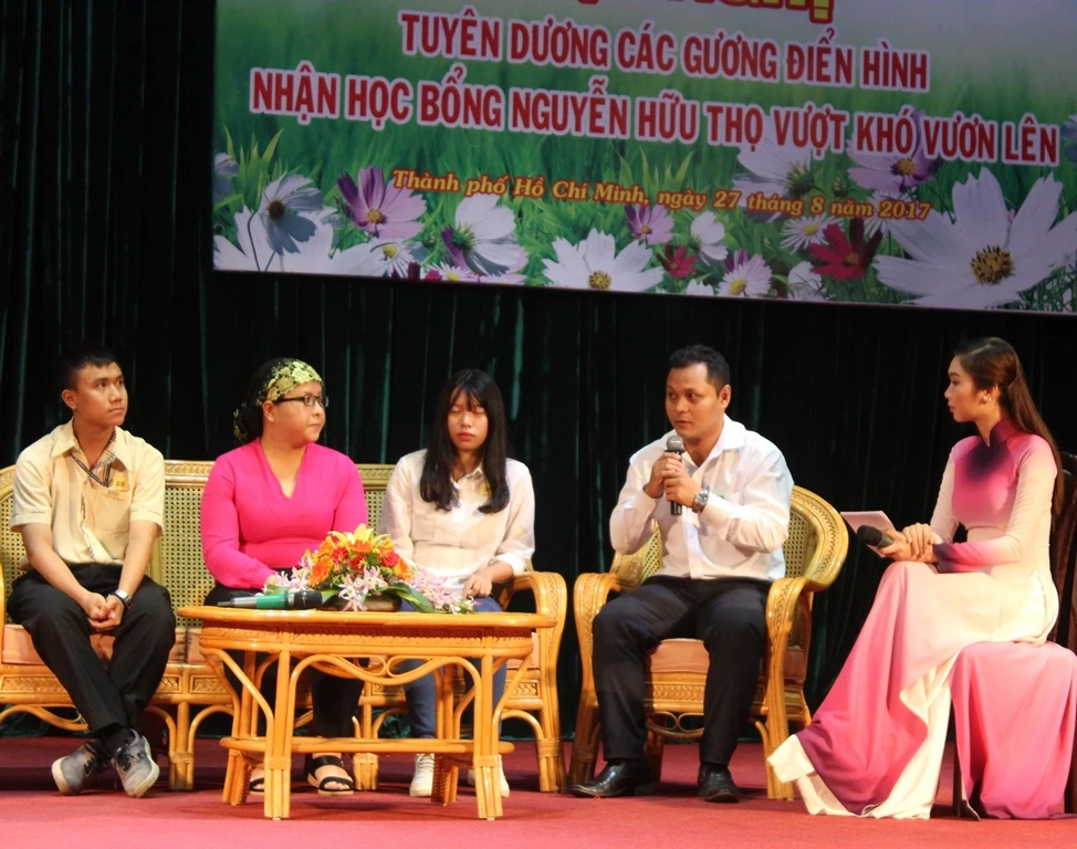 | Sáng 27-8, UB MTTQ Việt Nam TP.HCM đã tổ chức lễ tuyên dương và trao 146 suất học bổng cho các gương điển hình nhận học bổng Nguyễn Hữu Thọ vượt khó vươn lên tại Trung tâm Bồi dưỡng Chính trị quận 4. Khởi động từ năm 2001 đến nay thông qua cuộc vận động “Vì người nghèo”, UB MTTQ các cấp đã trao tặng hơn 413.000 suất học bổng và trên 9.000 phương tiện đi học cho các em học sinh, sinh viên với tổng giá trị hơn 254 tỉ đồng. Học bổng đã tạo điều kiện cho hàng chục ngàn học sinh, sinh viên có điều kiện tiếp tục học văn hóa, học nghề, kéo giảm tỉ lệ học sinh lưu ban, bỏ học, giúp các em hoàn thành chương trình Cao đẳng, Đại học, Trung học nghề tốt nghiệp ra trường, có công việc làm ổn định, giúp gia đình từng bước vươn lên thoát nghèo, ổn định cuộc sống.