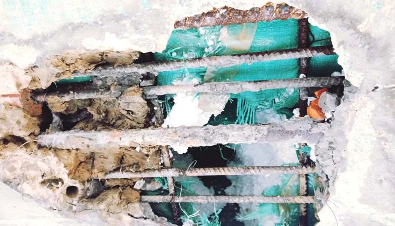 Và đã lộ rõ sắt, thép hoen rỉ.