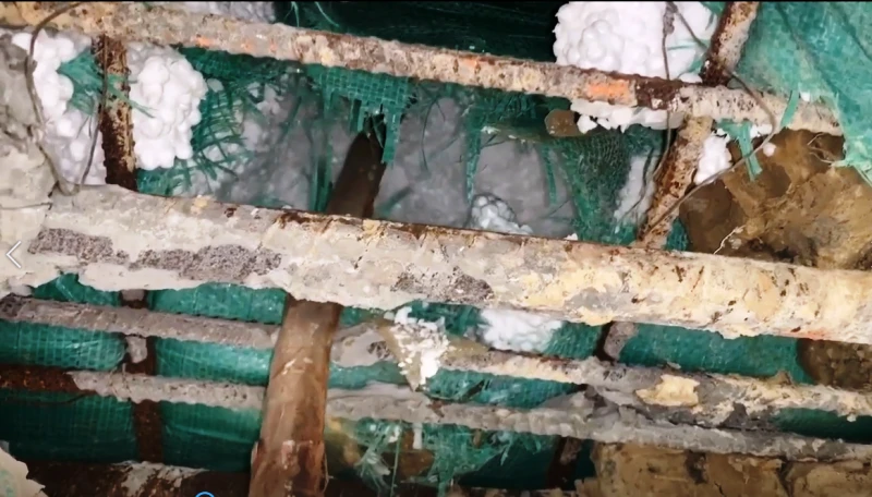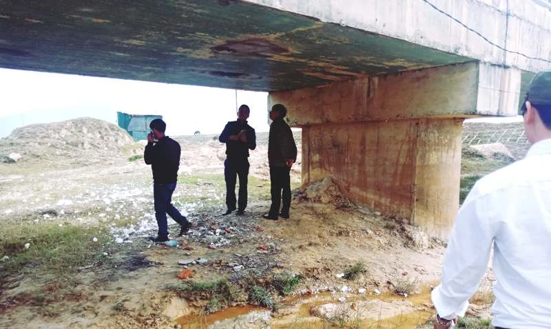 Trước đó, người dân đi đánh bắt cá dưới gầm cầu phát hiện cầu lộ cốp và sắt thép. Người dân lấy que chọc vào những nơi bê tông mỏng thì ngạc nhiên thấy xốp bay ra…