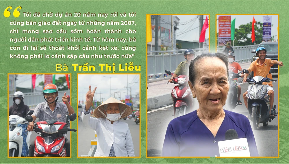 Bà Trần Thị Liễu (77 tuổi) là người dân từng hiến đất cho dự án cầu Long Kiểng vui mừng, xúc động khi cầu vừa được thông xe và hoàn thành.