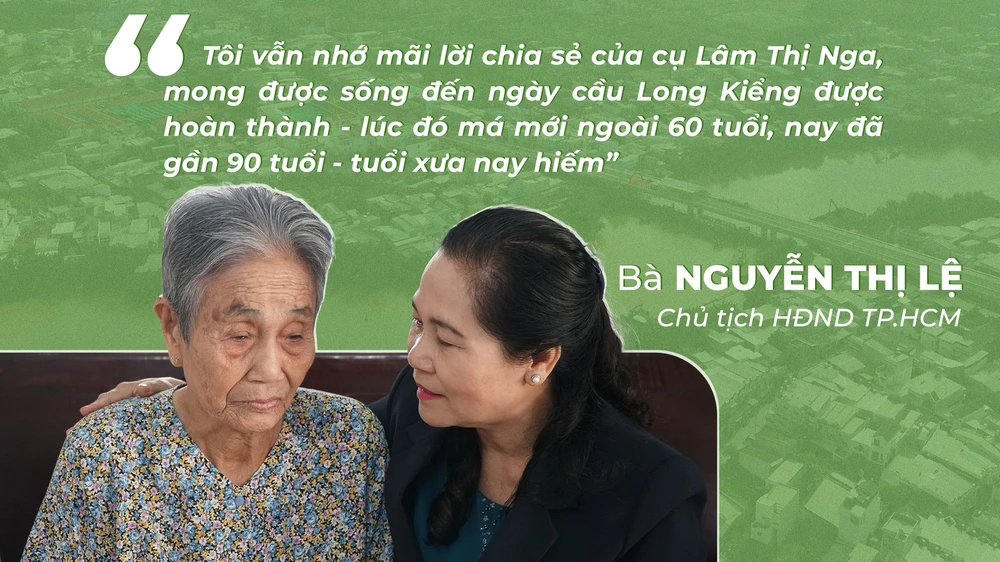 Sau nhiều lần tiếp xúc, thay vì gọi cụ, nay Chủ tịch HĐND TP gọi cụ Nga là Má. Bà Lệ nắm tay, ân cần hỏi han sức khỏe của Má Nga. Cả Má Nga và bà Lệ đều nghẹn ngào, xúc động khi cầu Long Kiểng đã hoàn thành và hơn hết lời hứa của lãnh đạo TP.HCM với Má Nga và nhân dân huyện Nhà Bè đã thành hiện thực. Tại gia đình Má Nga, Chủ tịch HĐND TP đã thuyết phục Má lên cầu mới, ngồi cùng lãnh đạo TP để chứng kiến giây phút cầu Long Kiểng được khánh thành.