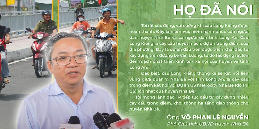 Tôi xem việc hoàn thành cầu Long Kiểng như một biểu tượng cho hàng loạt dự án sau này. Khi đã có mặt bằng thì không có lý do gì để chậm trễ và hoàn toàn có thể kiểm soát để hoàn thành vượt tiến độ. Đây sẽ là bài học kinh nghiệm để Ban Giao thông nhân rộng trong thời gian tới.