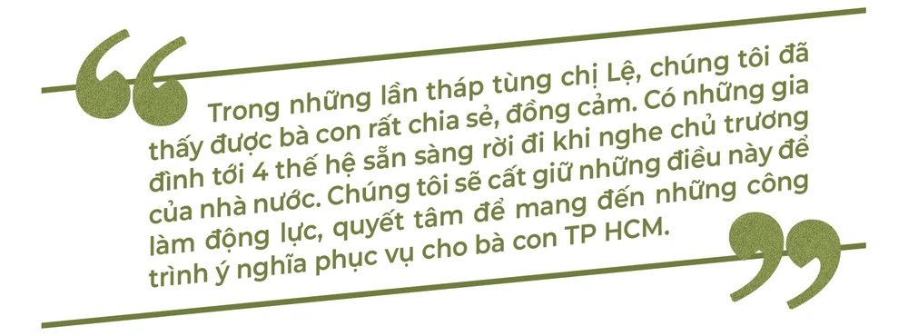 Khi đó, lãnh đạo huyện Nhà Bè đã tới từng hộ dân để lắng nghe, trao đổi tâm tư và cùng hiểu, thông cảm để từ đó dự án sớm được khơi thông.