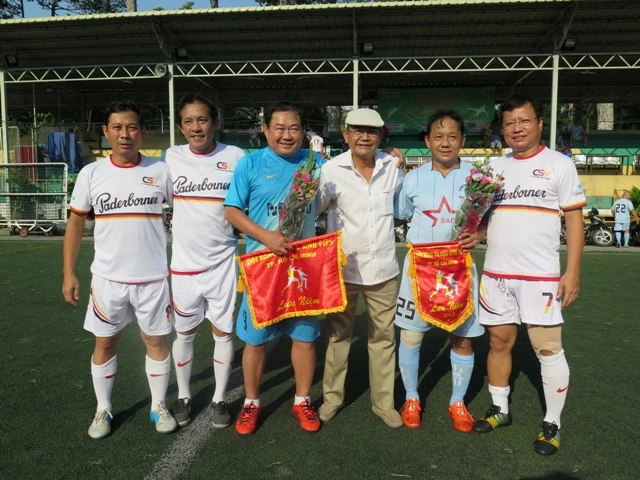 Phó Chủ tịch AFF Dương Vũ Lâm (bìa phải) và Tổng Thư ký Liên chi hội Cựu cầu thủ Hồ Nguyễn (thứ hai từ phải sang) cũng đến sân Tao Đàn kêu gọi ủng hộ cho cựu cầu thủ Nam Hải. Ai cũng cầu mong cho anh vượt qua cơn bạo bệnh để trở lại sân cỏ với đồng đội.