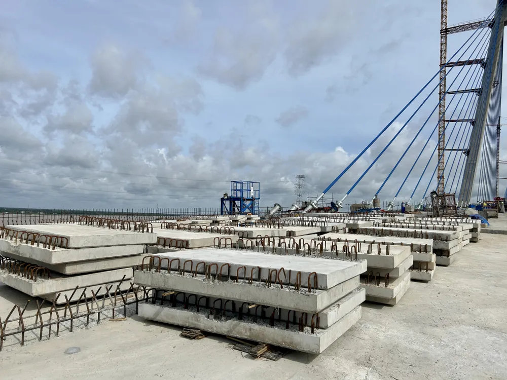 Dịp lễ 2-9 vừa qua, các nhà thầu thi công xuyên lễ để đảm bảo tốt nhất cho công tác hợp long. Hiện nhà thầu đang thi công đốt dầm MK15 - một trong những đốt dầm cuối cùng của cầu dây văng.