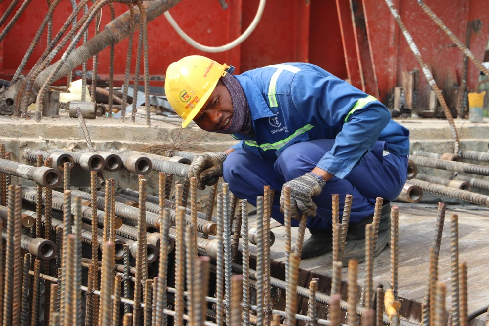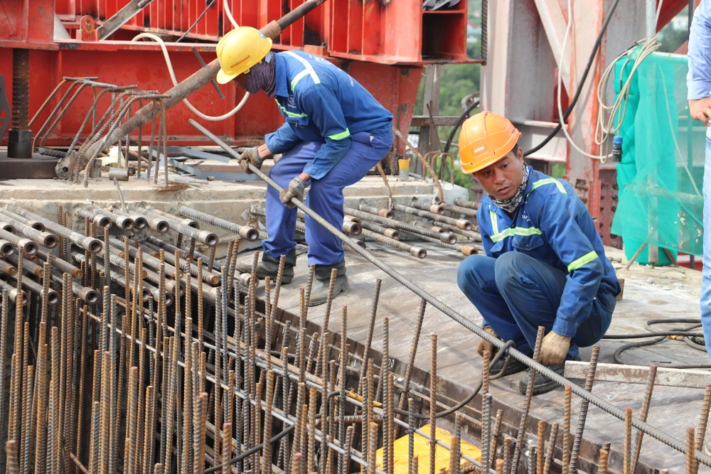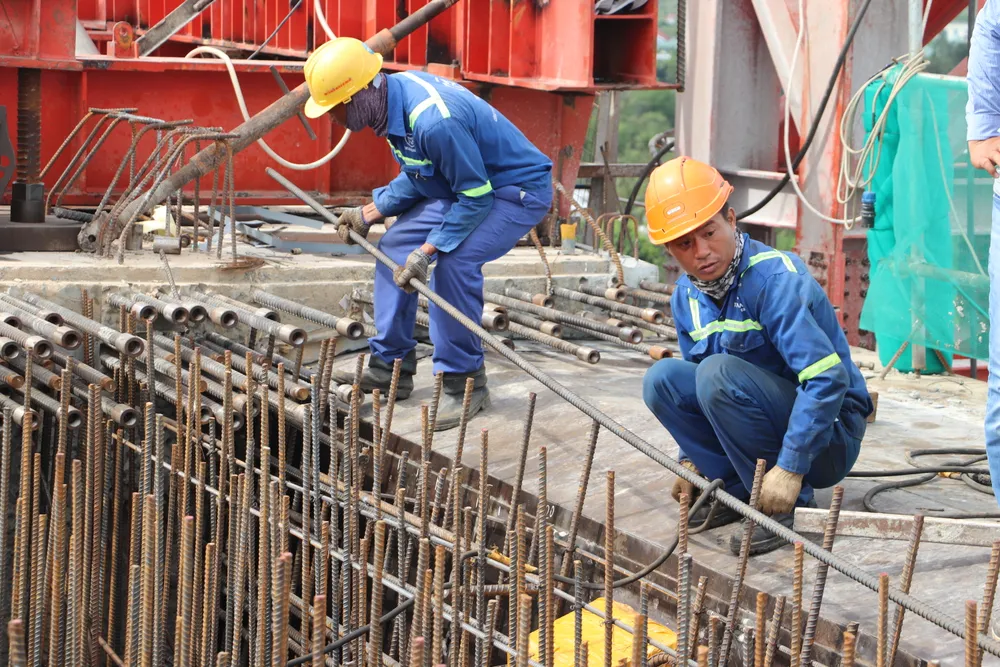 Nhân công luôn đảm bảo đội hình thi công 150 người/trụ tháp chia thành ba ca bốn kíp làm việc không ngừng nghỉ kể cả ngày lễ tết. Sau hợp long nhà thầu vẫn giữ nguyên đội hình thi công, tập trung toàn bộ nguồn lực để hoàn thành công trình đúng tiến độ, đảm bảo chất lượng.