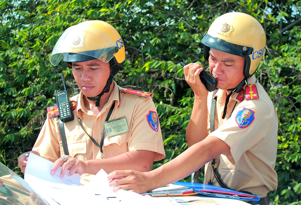 CSGT sẽ báo về trung tâm điều khiển để thông báo vi phạm cho tài xế. Ảnh: L.THOA