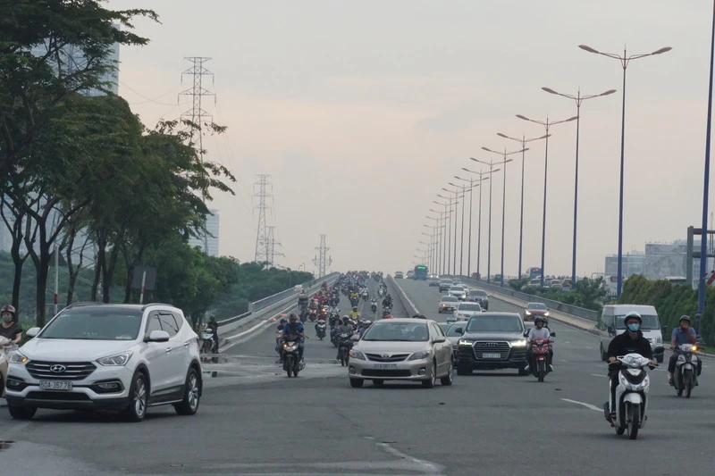Lượng phương tiện từ cầu Sài Gòn đổ xuống xa lộ Hà Nội không bị ùn tắc.