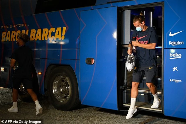 Hình ảnh các cầu thủ Barcelona xuống xe buýt vào khách sạn: