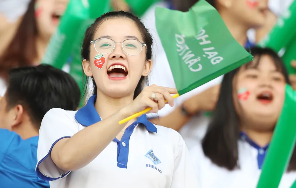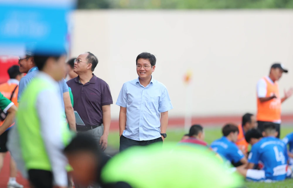 Ngồi trên khán đài cổ vũ cho đội nhà, bầu Hải cuồng nhiệt như một CĐV thứ thiệt và không ít lần ăn mừng hụt bàn thắng sau nhiều pha bóng tấn công đầy biến hóa và đẹp mắt của ĐH Cần Thơ.