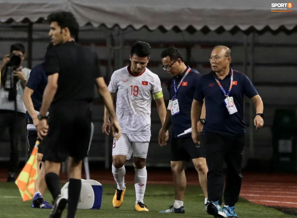 ...Dẫn đến Quang Hải rời sân và nghỉ luôn những trận còn lại tại SEA Games 30