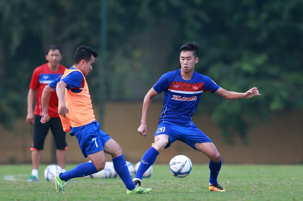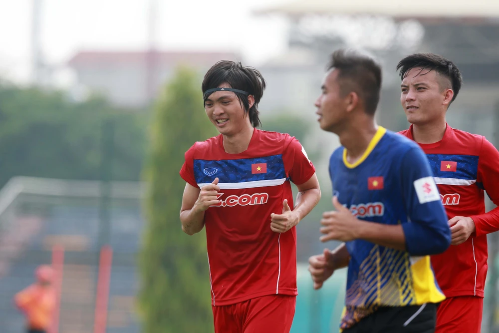 Các tân binh của đội tuyển U-22 Việt Nam hào hứng tập luyện.