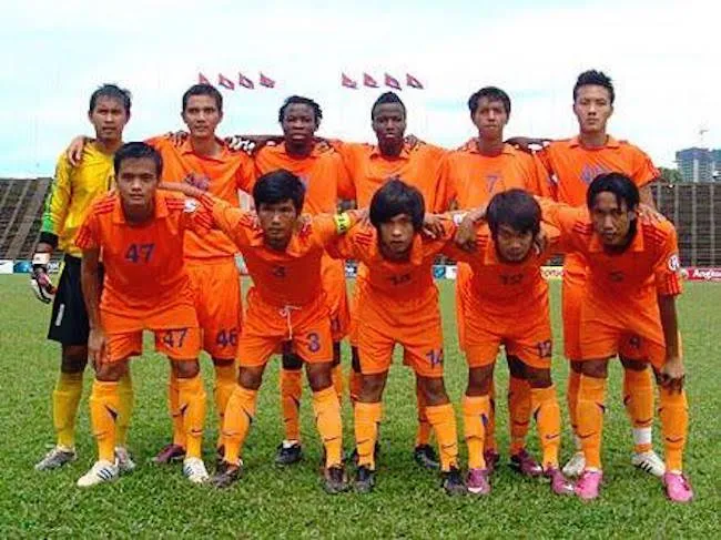 Lê Hoàng Duy (hàng sau, bìa phải) thời khoác áo một CLB của Campuchia.