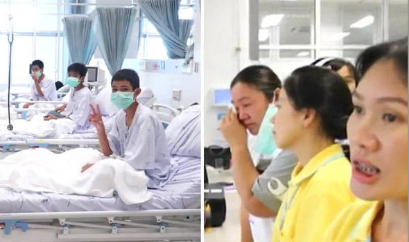 Các em đang nằm hồi phục tại bệnh viện tỉnh Chiang Rai. Ảnh: Express