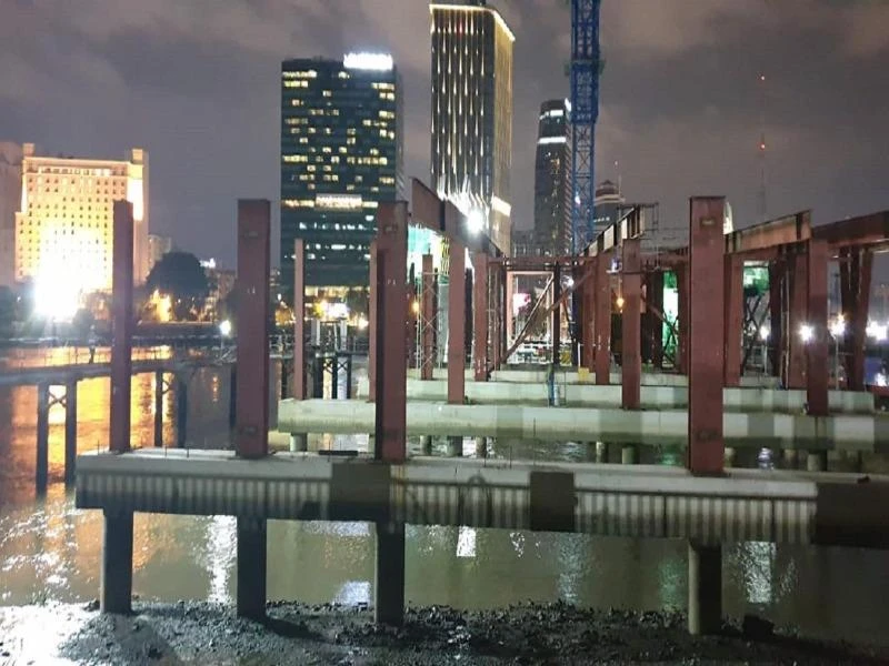 Hiện vị trí đốc tàu 8500DWT đã có mặt bằng để thi công trụ chính S2 - trụ tháp dây văng và nhà đầu tư đã tổ chức thi công.