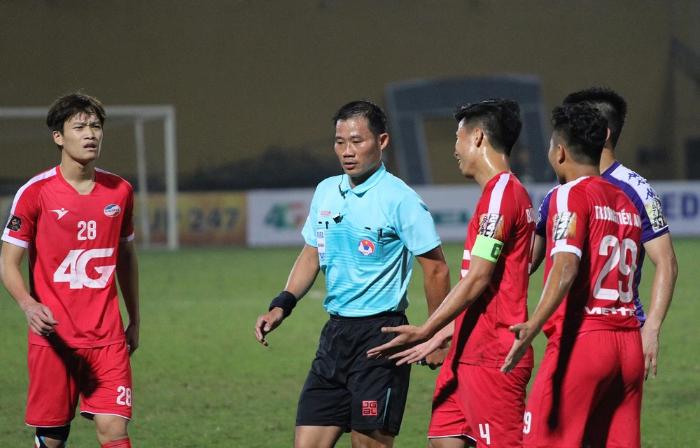 Trọng tài FIFA Trần Đình Thịnh mắc sai sót trong trận đấu giữa Viettel và Hà Nội.