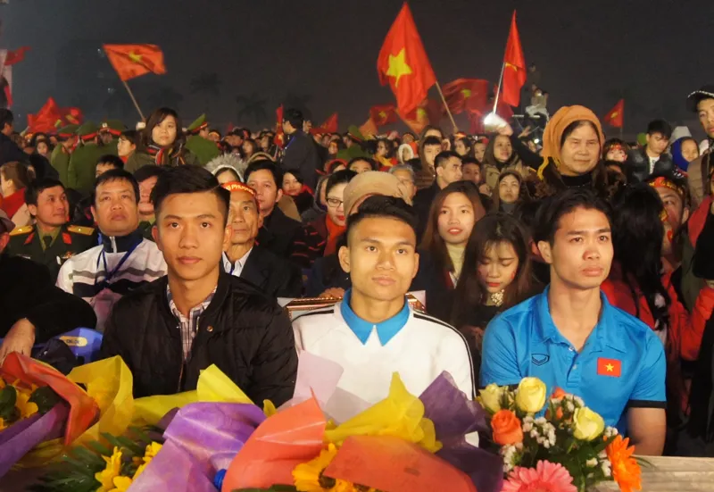 Do vậy, ban tổ chức đã phải đưa các cầu thủ Công Phượng, Xuân Đức, Văn Mạnh lên chiếc ô tô 24 chỗ, bí mật ra cửa sau ra quốc lộ 1A để về quảng trường Hồ Chí Minh tổ chức lễ vinh danh.
