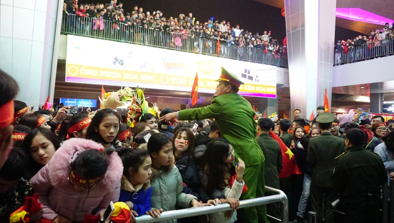 Tuy nhiên, khi chuyến bay chở các cầu thủ từ Nội Bài (Hà Nội) chưa hạ cánh xuống sân bay Vinh đã có rất đông người hâm mộ ra sân bay Vinh chen lấn nhau mong được tận mắt thấy, gặp các cầu thủ. Lượng người quá đông khiến khu cổng chờ đón ở sân bay Vinh “thất thủ”.