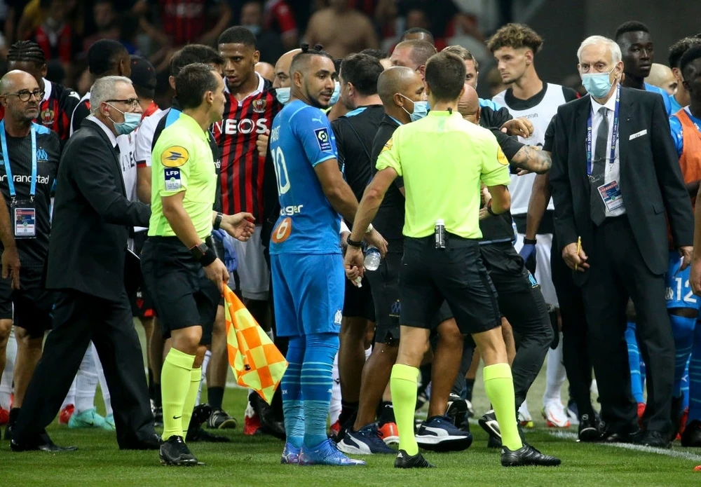 Thời điểm Nice đang dẫn trước 1-0, sự cố xảy ra phút 75 khi ngôi sao Payet của Marseille, người luôn bị nhiều chai nhựa ném vào người mỗi khi anh thực hiện phạt góc – thiếu kiếm chế đã ném chai nhựa trở lại khán đài.