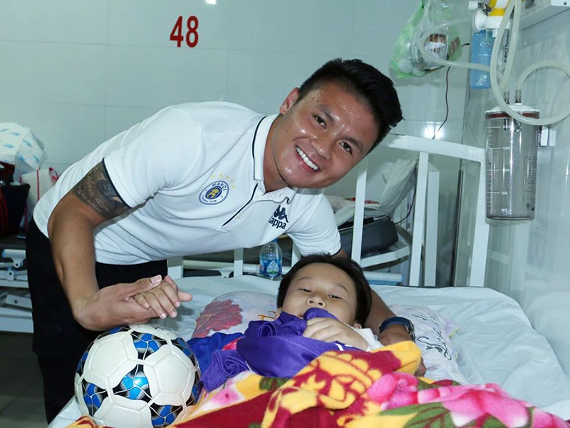Trước đó, tuyển thủ Nguyễn Quang Hải và lãnh đạo đội Hà Nội cũng lặn lội vào tận BV Chấn thương chỉnh hình TP.HCM tặng quà và thăm hỏi em Nguyễn Văn Thịnh (tám tuổi) sau khi đọc lá thư rất xúc động từ gia đình gửi cho CLB Hà Nội. Bé Thịnh không may bị tai nạn giao thông gãy chân. Chịu đựng cơn đau đớn trên giường bệnh, mơ ước của bé thật nhẹ nhàng khi viết trong thư: “Em rất yêu anh Quang Hải. Anh ấy đá bóng giỏi, chơi bóng chân trái và em cũng chơi bóng bằng chân trái. Em mong được anh Quang Hải tặng cho em chiếc áo để có động lực vượt qua nỗi đau này”.