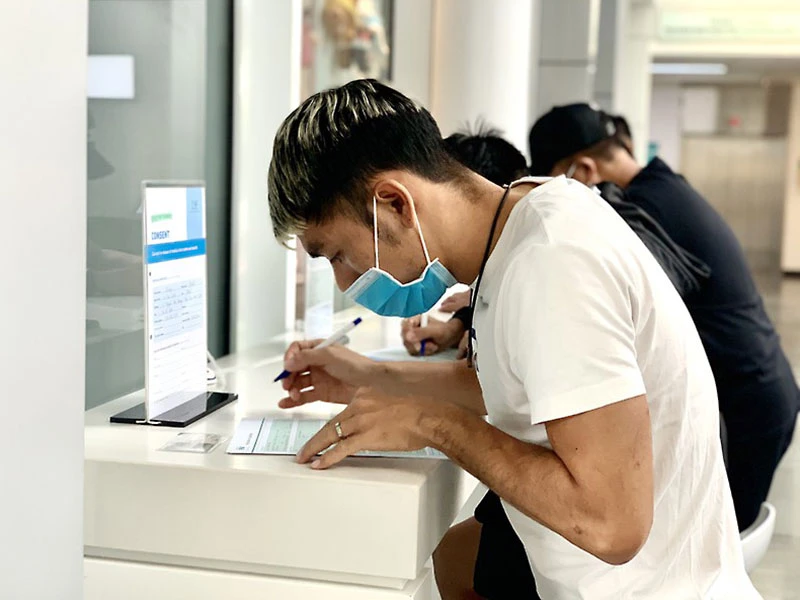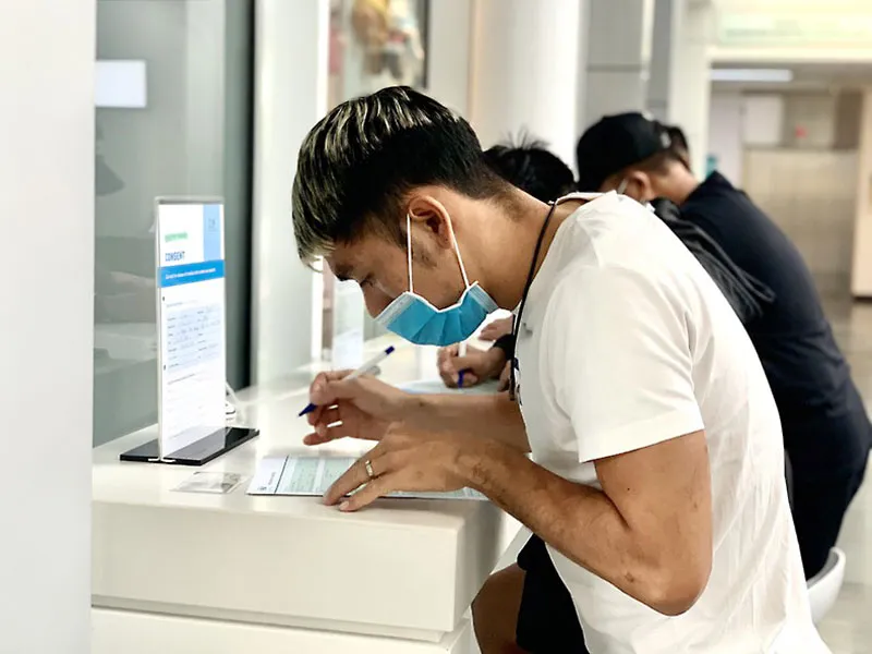 Cao Văn Triền của CLB Sài Gòn khai báo y tế trước khi tập trung