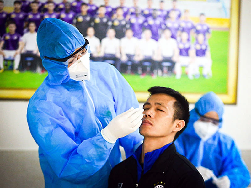 Đội trưởng Văn Quyết của CLB Hà Nội xét nghiệm COVID-19 cùng toàn đội. Ảnh: CTV