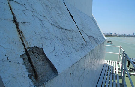 Các vết nứt chạy dọc ngang khu vực thân trụ (ảnh), không theo một quy luật nào khiến cầu Thuận Phước trông rất mất thẩm mỹ. “Cầu Rồng mới đưa vào sử dụng đã nứt loang lổ phải bơm keo rồi. Không biết cầu Thuận Phước nứt thế này có sao không nhưng tôi thấy không an tâm lắm” - anh Nguyễn Đình Quân (45 tuổi, trú phường Nại Hiên Đông, quận Sơn Trà) cho hay.