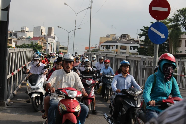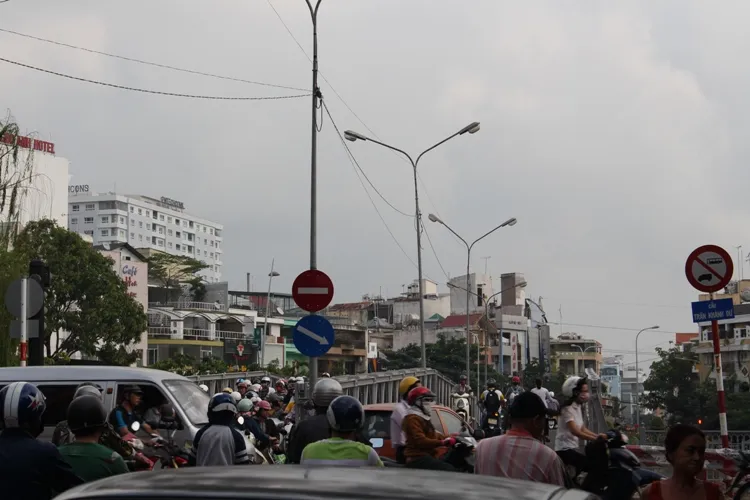 Cầu Trần Khánh Dư bắc ngang kênh Nhiêu Lộc được xây dựng theo kết cấu cầu bằng sắt với 2 chiều lưu thông riêng biệt. Giờ cao điểm buổi sáng, xe 4 bánh, 2 bánh từ Phú Nhuận, Bình Thạnh đổ dồn về. Qua đến đầu cầu phía quận 1, con đường Hoàng Sa chắn ngang với lượng xe dày đặc đã làm cho đoàn xe phải chậm lại dồn cứng trên cầu kéo dài hàng trăm mét.