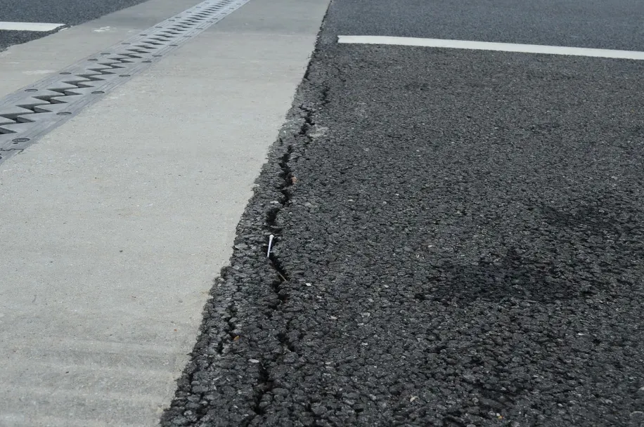Theo ghi nhận, nhiều điểm tiếp nối giữa mặt đường và mố cầu tại các cầu, cống này bị sụt lún nghiêm trọng, có điểm mặt đường sụt lún sâu so với mố cầu tạo vết nứt rộng. Tại các vết nứt này, nhiều rác vụn nhỏ rơi xuống đọng lại phía dưới.