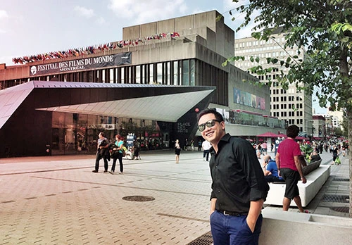 Đạo diễn Nguyễn Quang Tuyến trước khuôn viên nhà hát diễn ra WMFF. Ảnh nhân vật cung cấp