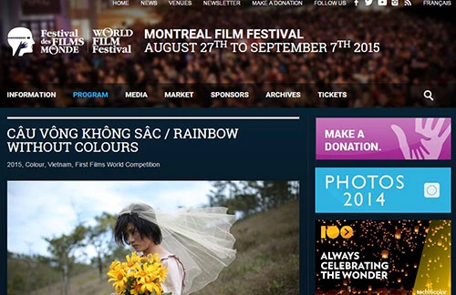 Sau khi trình chiếu cho Ban giám khảo, trong khuôn khổ WMFF, Cầu vồng không sắc sẽ có hai suất chiếu cho khán giả đại chúng: 9 giờ sáng ngày 4 và 5-9 tại cụm rạp Cinema Latin Quarter 9 (350 Emery Street, Montreal, QC – H2X 1J1).