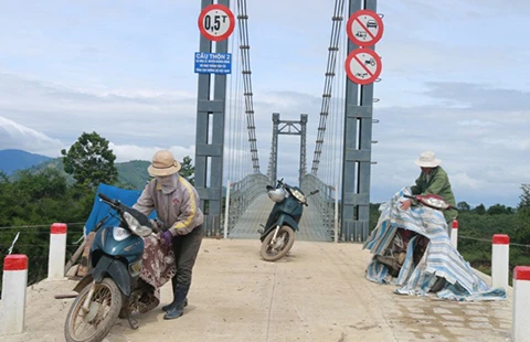 Ông Nguyễn Huệ (xã Hòa Lễ) cho biết: “Do một bên cầu bị chặn lại, muốn qua cầu sang rẫy ở xã bên canh tác, chúng tôi buộc phải bỏ xe máy ngay chân cầu rồi đi bộ. Riêng việc vận chuyển giống, phân bón... đến rẫy thì vẫn phải dùng thuyền qua sông”.