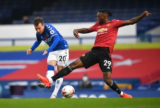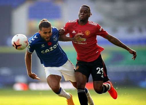Wan-Bissaka tranh bóng cùng Calvert-Lewin. ẢNH: PA
