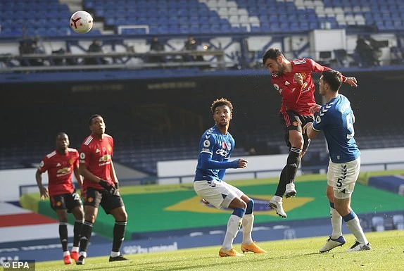 Hai đội tạo ra thế trận rất hấp dẫn khi MU lập tức đáp trả bằng… 1 bàn thắng. Phút 35, Bruno Fernandes tạt bóng vào đi theo quỹ đạo rất khó chịu, Rashford bật cao đánh đầu hụt khiến thủ thành Pickford mất phương hướng chỉ biết đứng nhìn bóng cuộn vào cột dọc bật luôn vào lưới. Bàn thắng được tính cho Bruno và MU lần đầu vượt lên dẫn trước Everton với tỉ số 2-1.