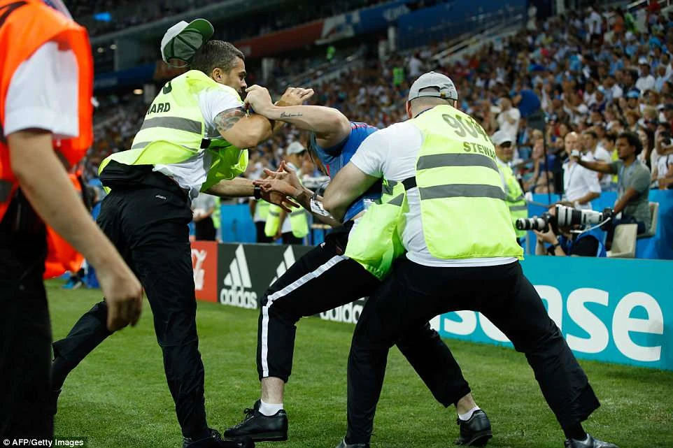 Một fan cuồng lao vào sân trước khi trận đấu bắt đầu khiến lực lượng an ninh vất vả ngăn chặn.
